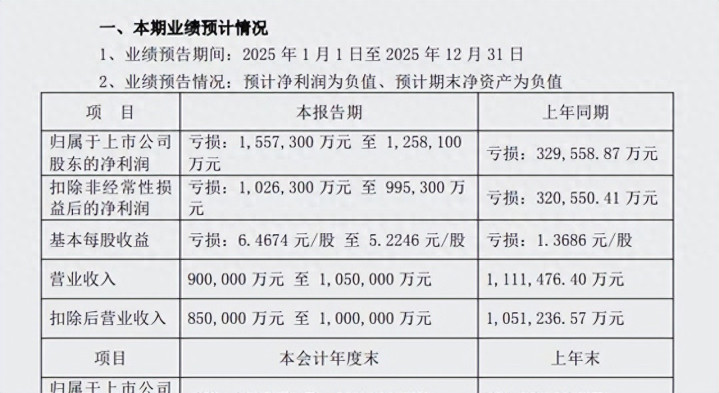 深康佳A在2026年1月30日发布了2025年的业绩预告,预计全年归属于股东的净利润亏损125.81亿元到155.73亿元,这比2024年的亏损32.96亿元扩大了好几倍。营业收入预计只有90亿元到105亿元,同比下滑明显。期末净资产转为负值,大概在-53.34亿元到-80.01亿元之间。公司说,这是因为对存货、应收账款、股权投资等资产计提了大额减值准备,加上消费电子业务收入掉队,毛利盖不住开支。公告一出,股价就直奔跌停,报4.48元,下跌23%,14万股东瞬间傻眼。